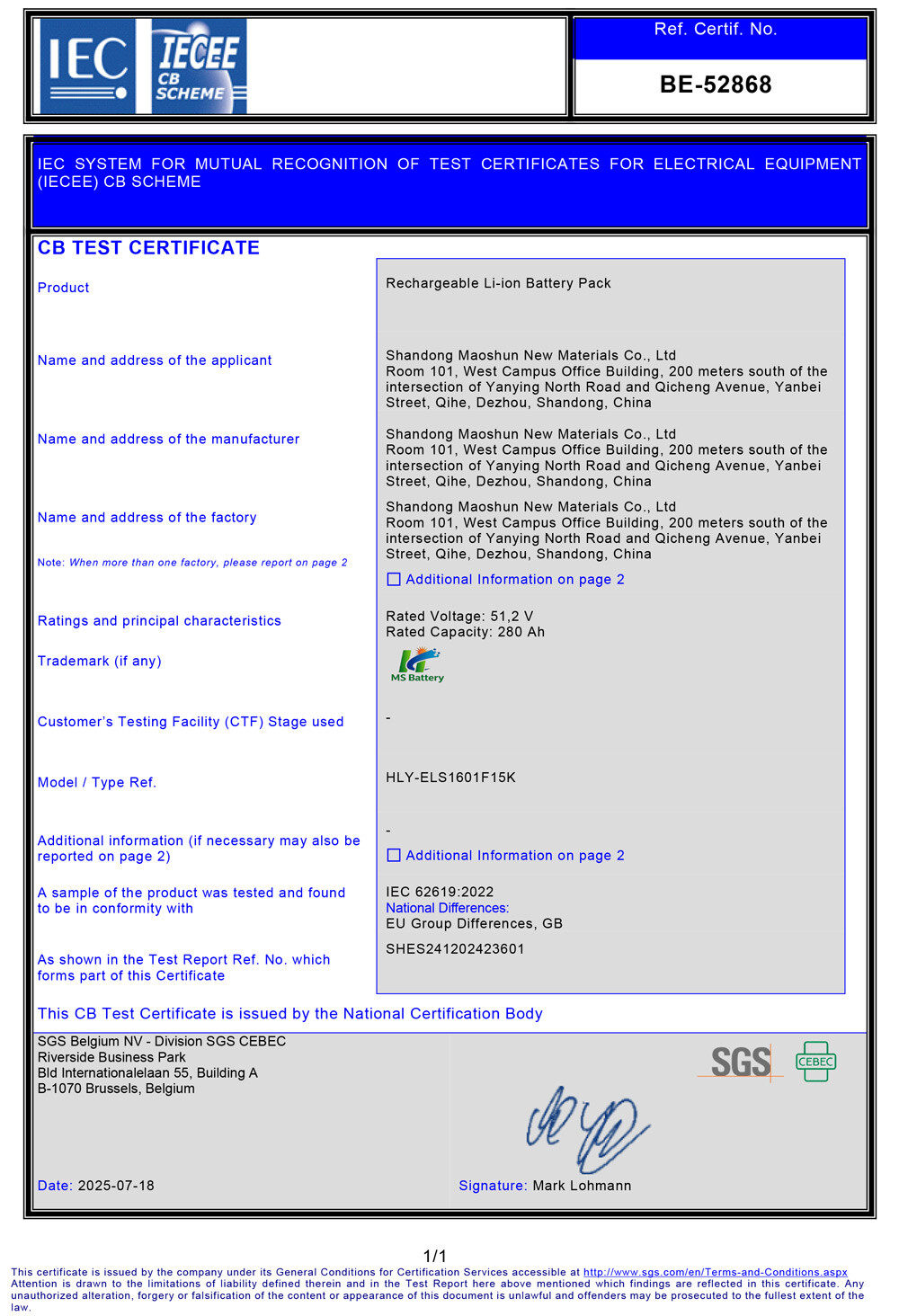 Founded in 2022, Shandong Maoshun New Energy Co., Ltd. is a comprehensive new energy enterprise. Adhering to the vision of "becoming China's top battery supplier," the company insists that science and technology are the primary productive forces. Its business covers new energy technology research and development, lithium battery material manufacturing, energy storage equipment production, photovoltaic energy storage microgrids, power EPC, power plant operation and maintenance, and industrial financial services.